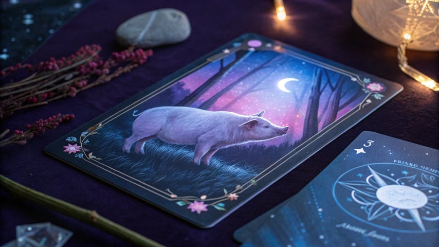 Vepř se v ročním rámci často pojí se Světem, tedy s uzavíráním cyklů a propojením souvislostí. Podpůrně se uvádí Tři poháry, které se popisují jako koordinace v týmu a sdílené aktivity. Oblast pozornosti vyjadřuje Čtyřka pohárů, pozornost k rutině a k tomu, co může být přehlíženo, pokud je prostředí příliš jednotvárné.